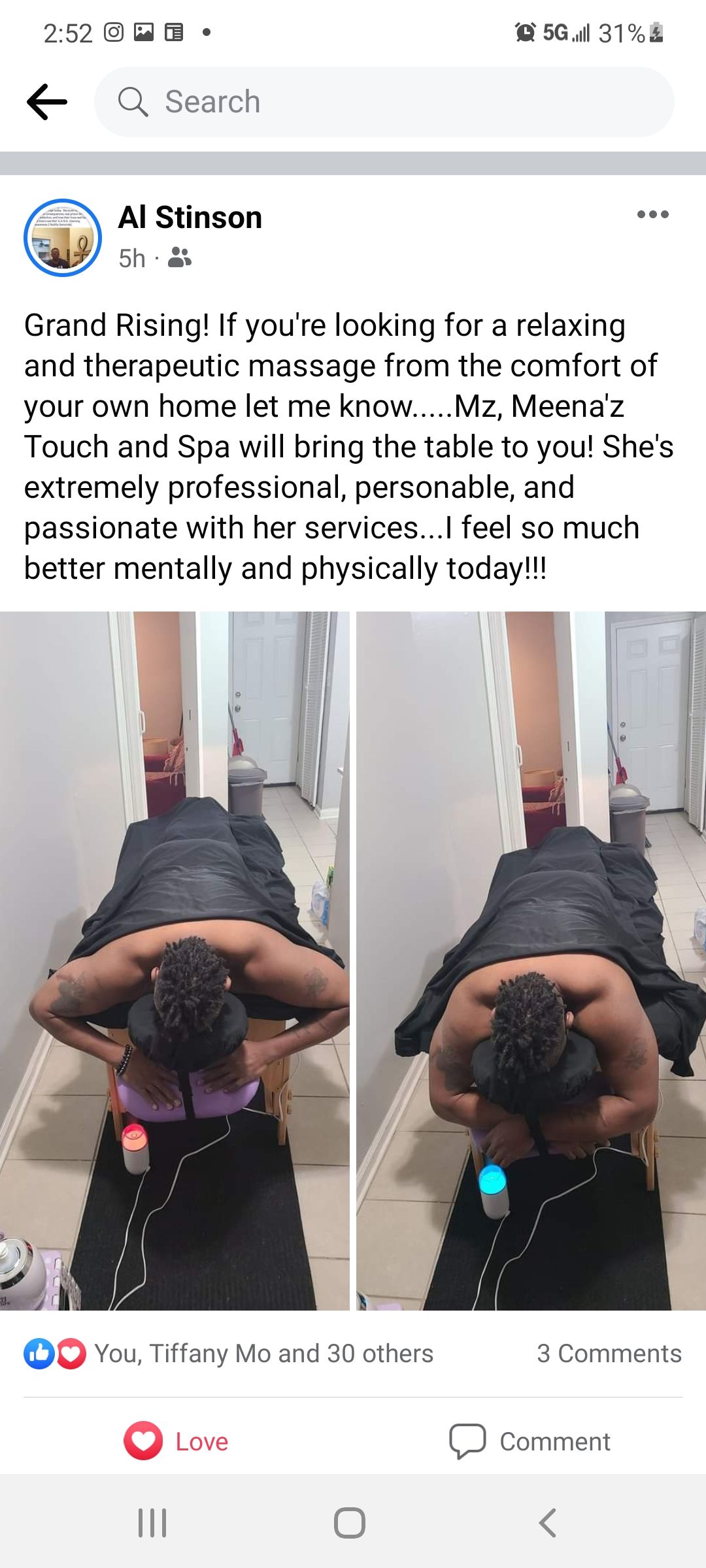 25 min back, neck, and Shoulder massage for you and your guests. This package is done on the table. There is a minimum of 4 people and no more than 7 in one setting. This package requires a non-refundable fee of $150 deposit to book to be applied to your total balance. Prices includes set up fee ($50) and travel fee ($50). Broken down there is a 2hr min(4 ppl at 25 mins per person plus 5 mins sanitation between each person($100 per Hr $300 min travel and setup fee $100 Add the 3 additional ppl ($50 per person) and it brings your total to $450